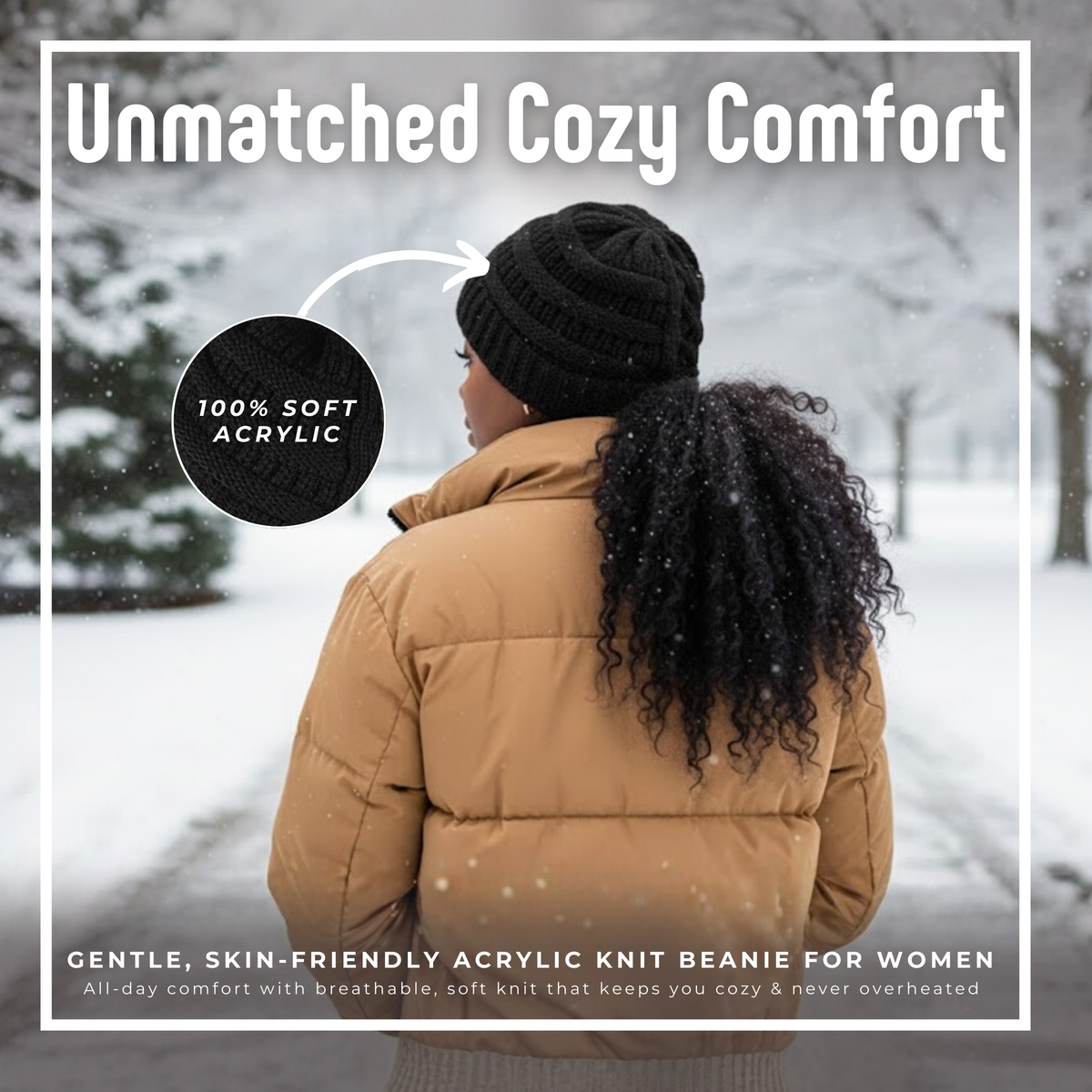 • SOFTNESS: Crafted from 100% super-soft knit acrylic, this women’s ponytail beanie delivers cozy warmth with a comfortable, snug fit. Designed for everyday wear, it’s durable, breathable, and made to last through the cold-weather season