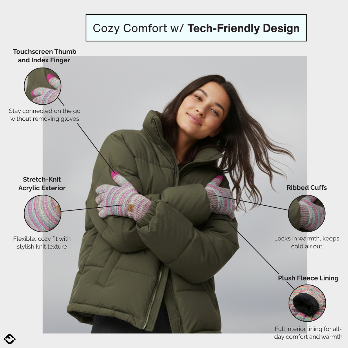 FAUX FUR CONVERTIBLE MITTENS - BLACK